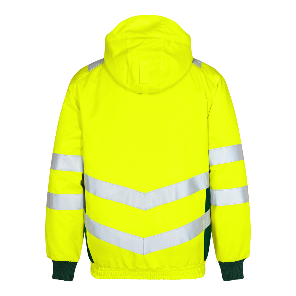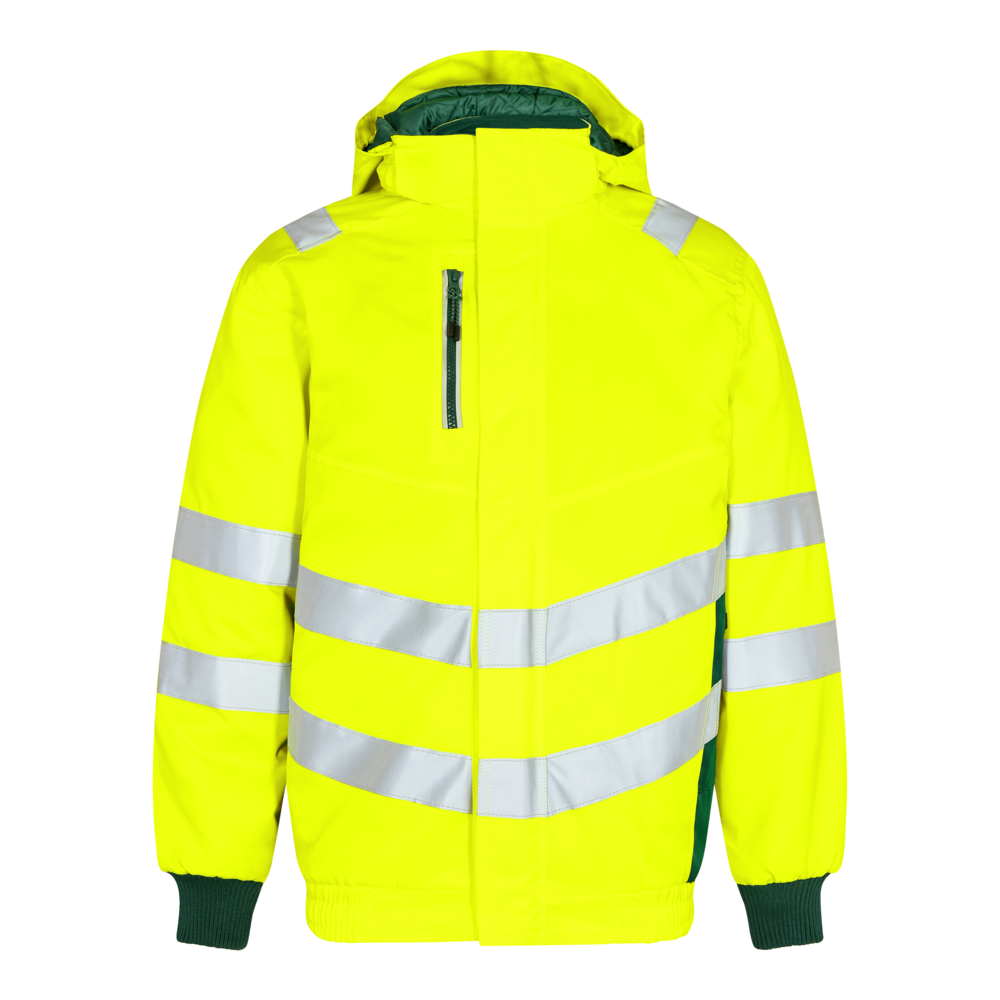 Modern kesimli, floresan rüzgar ve su geçirmez pilot ceket. İçi polarlı yüksek boyunlu. Önde fermuar ve Velcro ile çift patlet kapama. İki geniş yan cep ve Velcro kapamalı göğüs cebi. Biri fermuarlı olmak üzere iki iç cep. Ayarlama seçeneği ve güvenlik kaskı için yeri olan çıkarılabilir başlık. Alt kısmı lastikli, bilekleri ribanalı. Baskı transferleri/nakış için ön tarafta fermuar. Omuzlarda, kollarda ve belde reflektörler. 25 yıkamadan sonra test edilmiştir.